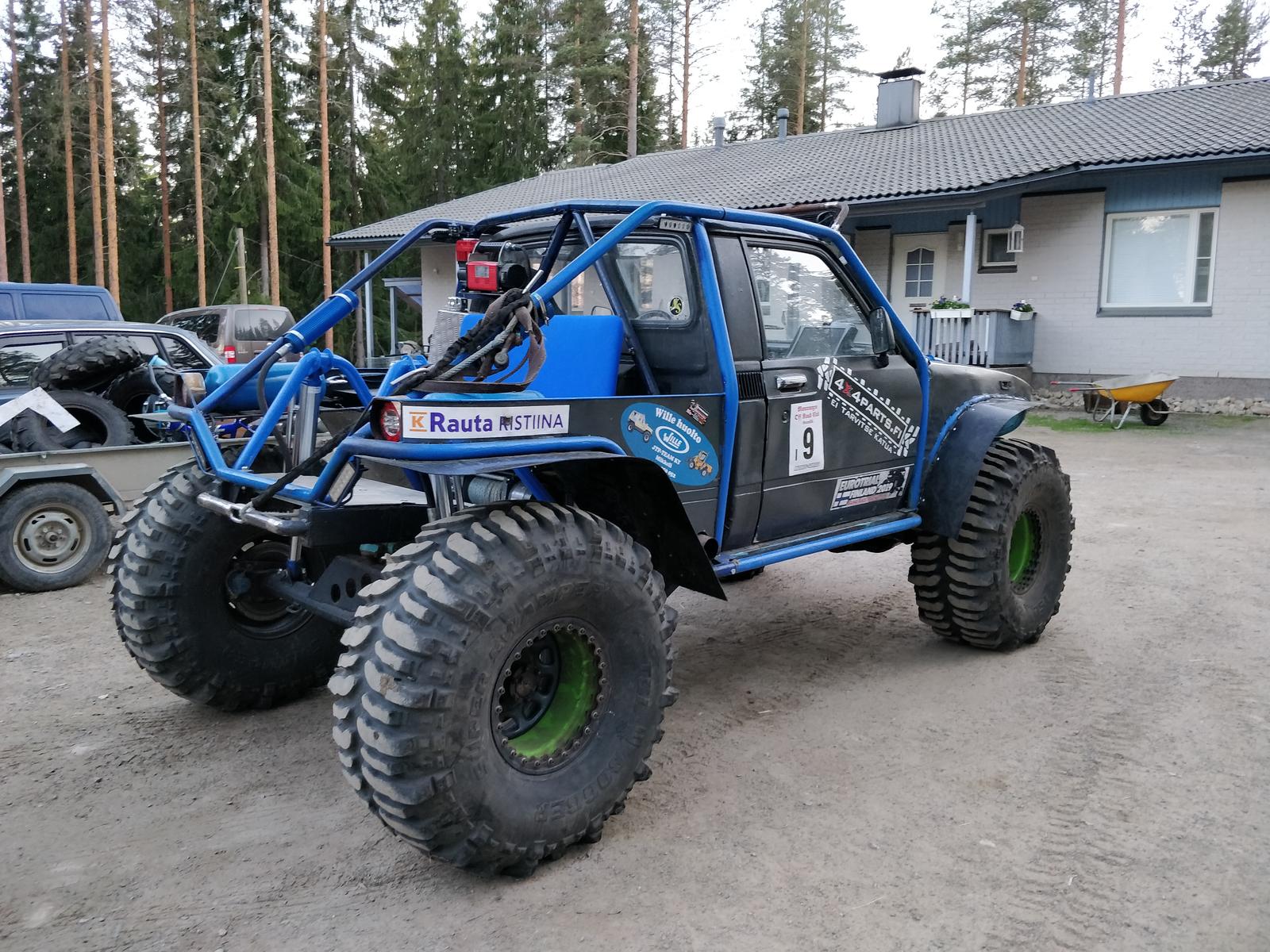 range roverin tukivarret ja alkuunsa oli farkku ladan jouset ja skyjacker iskarit. nykyään on nuo typpikepit takana