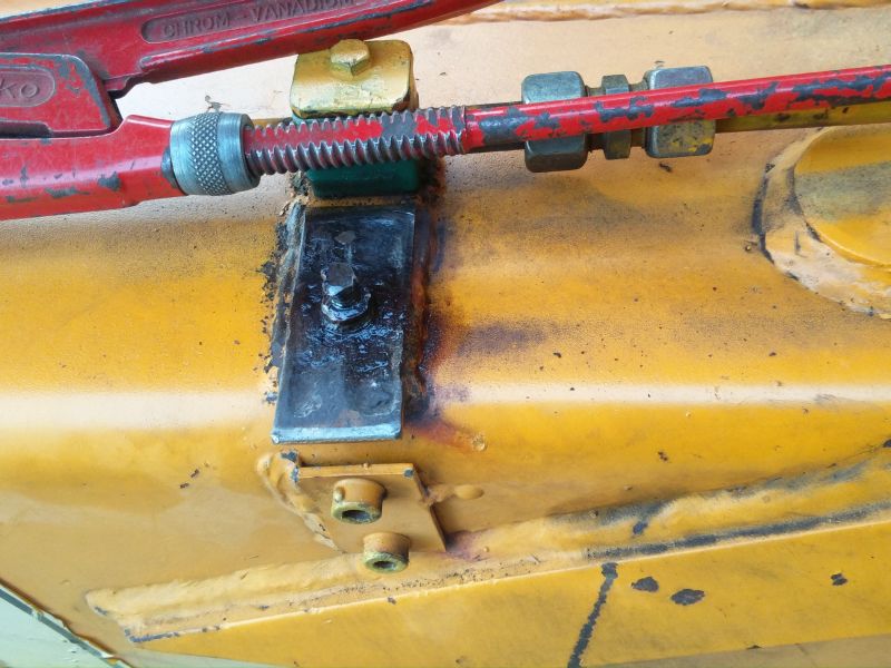 Extra hommana oli vielä yksi klemmari mistä oli pultti poikki. Suosiolla pora ja kierretappi hommia. Puomissa lähes kaikki putket ajettu puihin. Vinksallaan sinne sun tänne. Tollanen 22mm teräsputki ei ihan käsivoimilla taivu. Seiväs ja remmi putkentaivutin kuitenkin tuntuu riittävän putkien oikomiseen.
