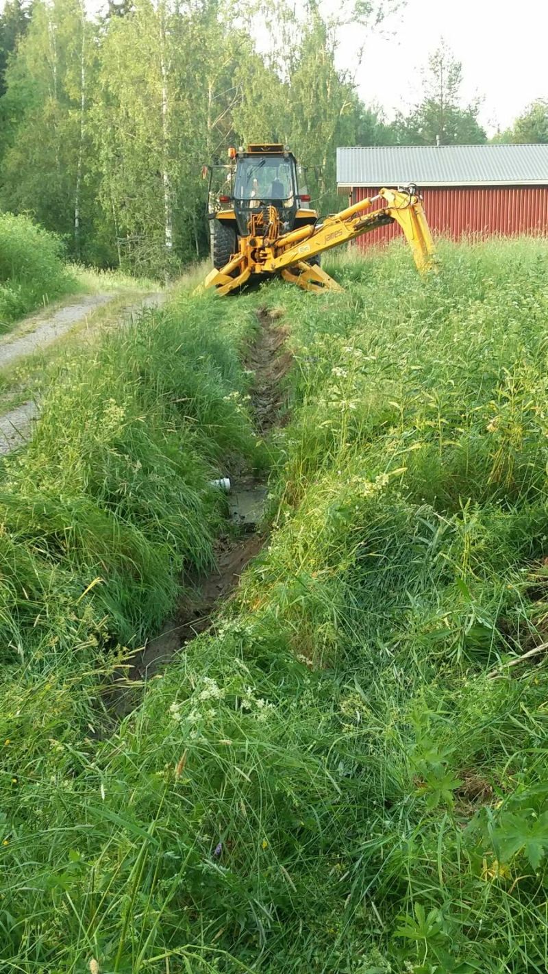Alkukesä menny mökkiremontissa, mutta nyt James on herätetty taas talviunilta. Vaihdoin ojakauhan koneeseen ja meininki oli harjoitella ojan kaivamista.