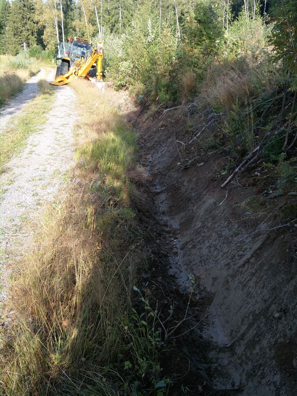 Sitten harjoiteltu ojan kaivamista. Paljon on vielä opeteltavaa, mutta alkaa vako kuitenkin näyttämään ojalta. |