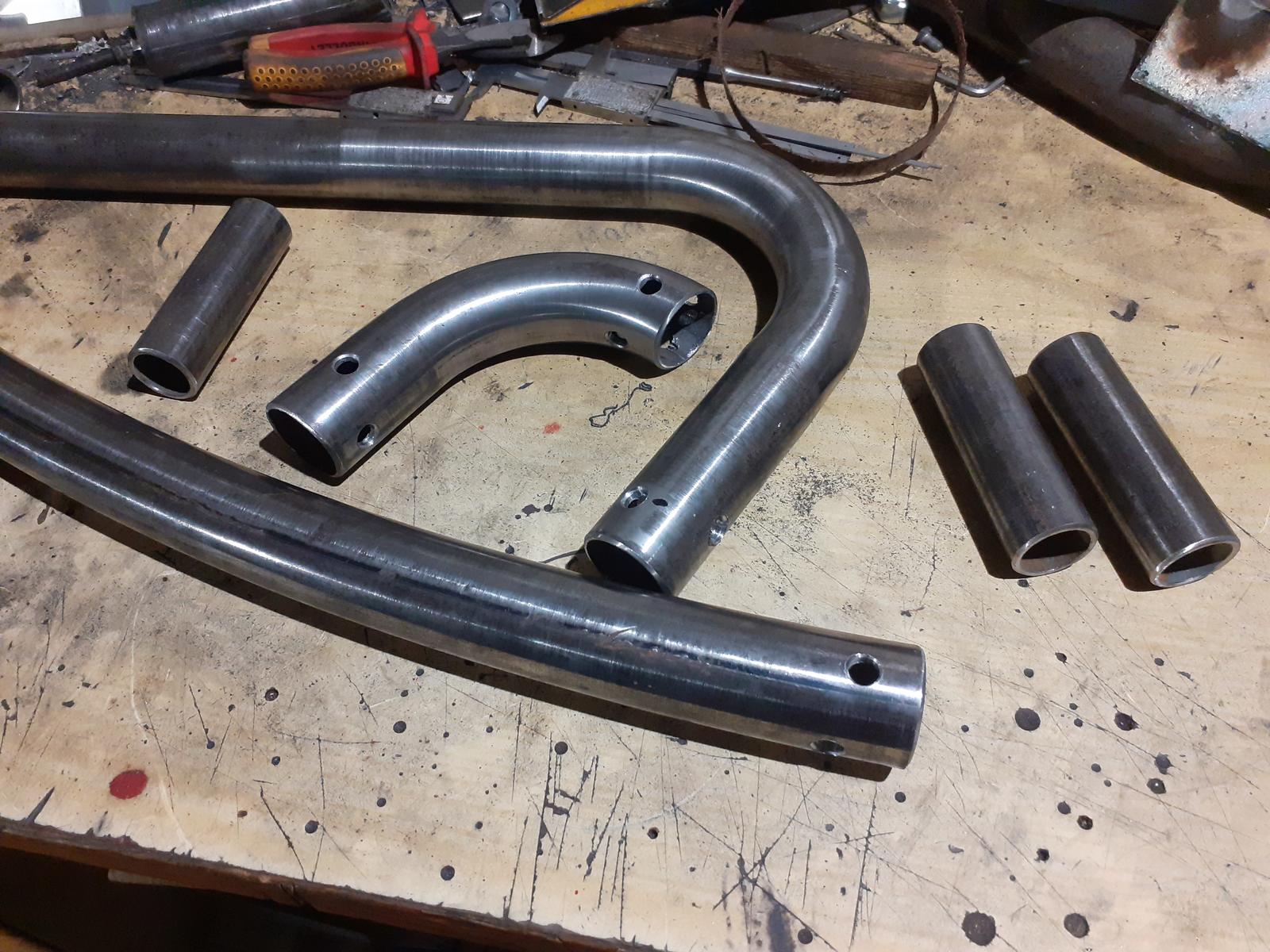 Nyt kuitekii taas kunnossa ja kylkiputkien asennus alkoi. Eihä nuo mitekää nätit tuu olemaa, mut ehkä ajaa asiasa