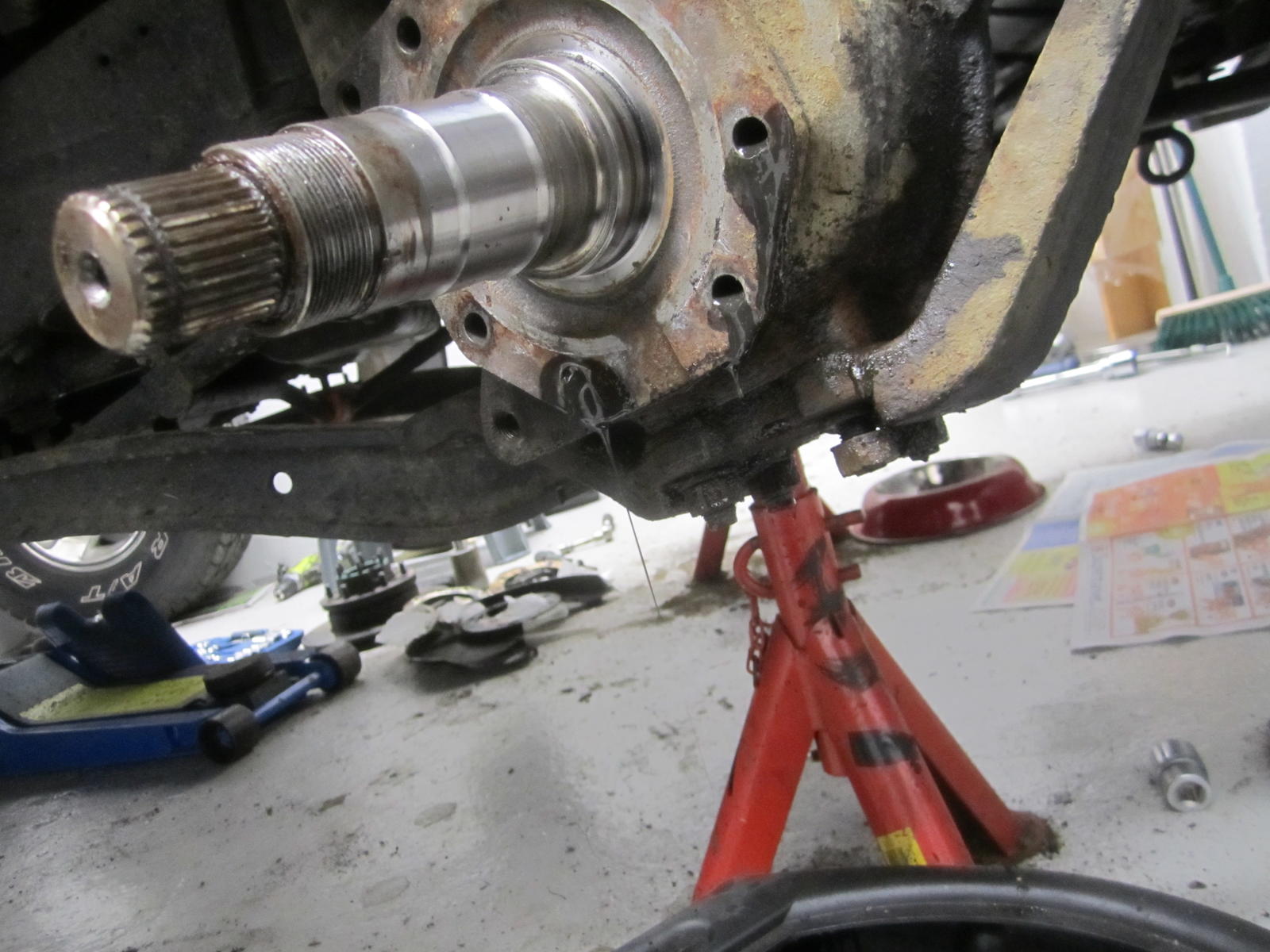 Vetari (oik) ulos. Tarkemmin katsottaessa, Superstefan takana oli toinenkin stefa, tavallinen (!?). Edellinen korjaaja oli työntänyt samaan reikään 2 x stefat, vaikka todellinen vika oli vetarissa = urat !! Miksi hän ei ostanut uutta vetaria, Toyotan orkkisvetari vain 70dollaria+ship Dubaista. Kaikki Toyota varaosat tulivat nopeasti Partsouq.com:sta ja Superstefat (n.20e/kpl) Laakerinetti.fi, jonka palvelu oli todella asiallista! Raidetangon mutterin sokka tietysti katkesi. Pyöritin sormea pallon ylä- ja alalaakerikehän pinnalla, sormeen tuntui selvästi pystyuria. Onneksi ostin myös laakerit. Bronssihelaa ei tarvinnut vaihtaa, otin mitat, samat mitat kuin uudessa ! Vanha vetari irtosi kun pari kertaa pudotti vetarin pösön peltivanteen reiästä sisään! Vetarissa oli tosiaankin urat, uusi Toyotavetari putkeen. Samalla kannattaa ostaa uusi sokka (vetarin ja nivelen välissä), sillä tod.näk vanha katkeaa kuten minulla. Sekä pyörän laakerien lukituslevyt. Ja tietysti vaseliinit vetarin ja pallon sisään. Toiselle puolelle uusi Superstefa, pallontiivisteet, vetari kunnossa. Hyvä idea kootessa käyttää paria poranterää ohjureina. Palikat kasaan ja baanalle ![]() Lisäys: vaihdoin etuperän huohotusletkun päässä olevan väsyneen mikä sen nimi onkaan..venttiilin.