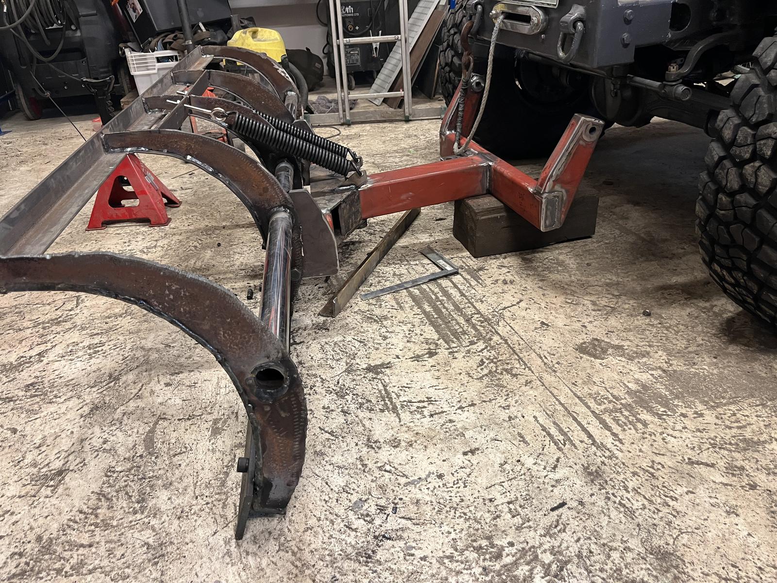 Nostosylinterin joutu tilaamaan pitemmän ja se kun tulee teen sille kiinnikkeet ja samalla tuon puskurin tilalle semmonen missä ei vinssille ole paikkaa vaan hydraulikoneikko tulee siihen.
