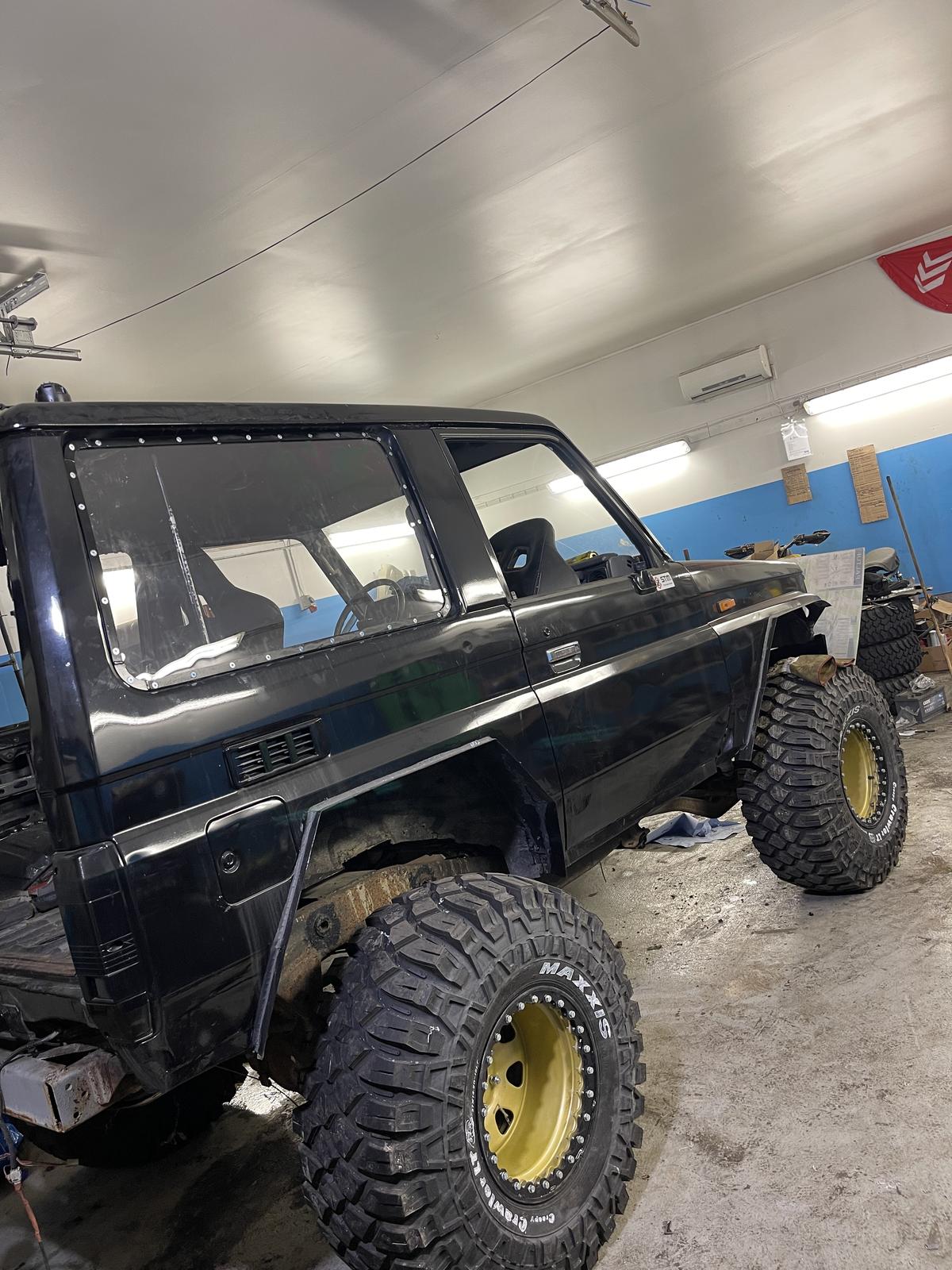 Ummikon LJ projektiMorjesta vain ja tervetuloa seurailemaan Tojotan rakentelua. Kesällä pääsi offikärpänen puraisemaan ja kuume oli valtava. Kokemusta itsellä ei asiasta ole kuin lähinnä lähes vakiokuntoisilla pajeroilla talviteillä tms ajelua Kuumetta ruokittiin lähinnä youtube videoilla ja haave jostain pienestä Suzukista MAX 33” rattailla oli vahva. Niitä nettiautosta tuli selailtua. Mutta tarpeeksi kun kuumeella lähipiiriäkin tylsistytti niin yllättäen ihan lähipiiristä löytyi auto seisomasta. Tietona oli vain että Toyota LJ joka on hieman levällään ja alla 35” rattaat. Lopulta kun sai omistajan kanssa aikataulut passaamaan ja pääsi näkemään Tojotaa niin odotus kokotalven kestävästä hitsausprojektista muuttuikin positiivisempaan suuntaan. Siellähän odottikin oikein ryhdikäs ja kopakka LJ Alla oli ajamattomat 37” Maxxikset lukkovanteilla,keulilla runvan vinssi,autoa korotettu ja muutenkin autoa oli jo jonkunverran rakenneltukkin kovempaan käyttöön. Tapahtui ikäänkuin heti hyppy syvempään päätyyn. Ei muutakuin taas aikataulut omistajan kanssa kohdilleen, auto lavalle ja hallille. Ilta oli jo pitkällä mutta pakkohan sitä oli käyntiin heti yrittää. Ensinmäisenä täydet akut paikoilleen ja kokeilemaan. Ja vitut,virtalukko jumiin. Nooh pohja lukosta irti ja mensselillä ruvettiin 2LTtä herättelemään. Ensihuomiona oli että kaikki hehkut on pimiänä. Mutta hyvin pieni aavistus hyrrälle pilottia niin sehän räjähti tulille ja kävi nätisti. Jospa siinä olis nyt alkutekstiä ihan väsyksiin asti. Auto on tarkoitus saada kuluvan talven aikana takaisin suomen tieliikenteeseen ja rakentaa aivan metsäkelpoiseksi peliksi. Jopa siihen kuntoon että kehtaa käydä jotain kisantynkää autolla katsomassa? Oikeastaan suunnitelmat on jo ensitalvelle suuremmat kuin tälle kuluvalle ![]() Laitetaan mukaan muutama kuva aivan ensimmäisestä silmäyksestä tojotan kanssa.