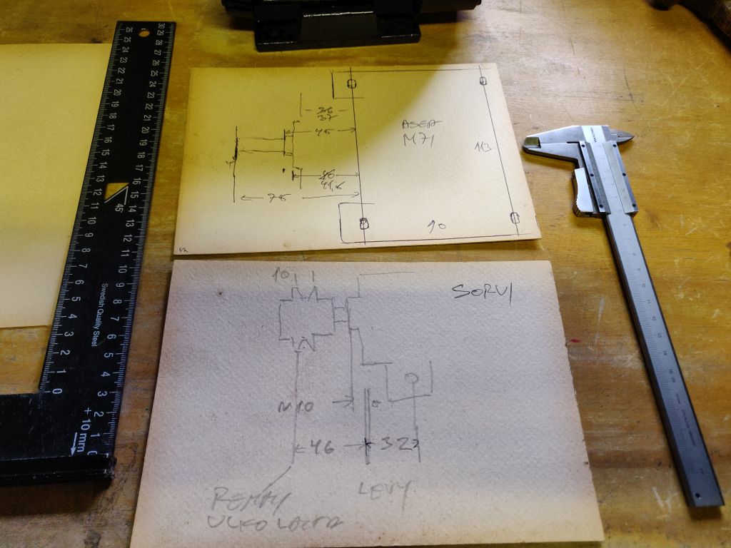 Tuli heti tuntumaa koneen outoihin kierteisiin. Ruuvi oli 8,95mm 1mm nousulla. En ryhtynyt tekemään samanlaista. Myöhemmin tämä ratkesi vetämällä M10 kierteet johteisiin.
