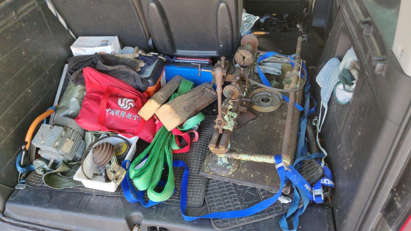 Mukana tuli jotain työkaluja ja näytti siltä, että myös kierrerattaat. Tästä myöhemmin lisää.