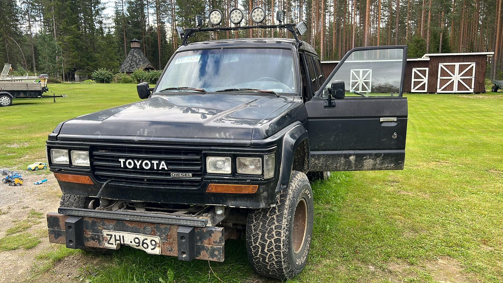 HJ60 käyttisTuli hommattua kehon liikkuttamiseen HJ60 vm89. Tämähän toimii tosissaan käyttöautona näin sulan maan aikaan vuoro viikoin kun muksut on mulla muuten liikun moottoripyörällä. Ekana ostin 37" Creepyt ja ne on tällä hetkellä tulossa kovasti kohti joensuuta. En tiedä mahtuuko alle mutta kyllähän pelti antaa periksi. Hommasin myös turbopakosarjan ja turbon. Ensi viikolla pitää turbo nakata paikalleen. Hirveästi jo syyhyttäisi alkaa ahtamaan. Autohan oli katsastamaton. Leimalle piti viskata uudet etujarrulevyt ja palat kun edellinen seppä oli laittanut jarrupalat väärinpäin eli rauta rautaa vasten ![]() Katsuri löysi yhden reiän oikeasta takapyöränkotelosta ja takajarru ero oli liian suuri. Myös urakkanupista tuli hylsy. Nopea fiksi näille ja leima oli paperissa. Takalukon kytkentä on jumissa johon pitää myös perehtyä jossain välissä. Takaluukut ei auennut joten samalla reissulla kun kävin turbon niin otin purku hj:stä takaluukun lukon. Samalla reissulla tarttu mukaan korojouset ja kuskin ikkunannostin. Autossa on ehdottoman siisti kattoverhoilu. Joku edellisistä on vääntänyt lattiamatot katoksi. ![]() Auton rajojen mukaan on tullut "offailtua" tai lähinnä emäntää totuttanut auton kyytiin ![]() Sitten kysymys. Millä papereilla olette katsastaneet ahtimen HJ60?