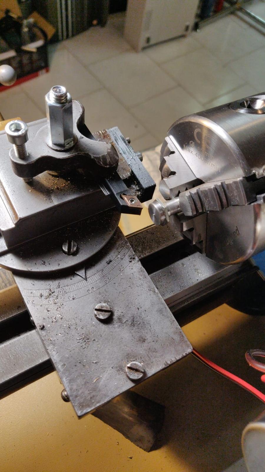 https://www.paulimot.de/Drehen/Drehb...-Loch-Aufnahme Kiinankamaa, mutta jotenkin laatuseulottua. Osoittautuikin priima kamaksi. Tuosta Burnerdin laipan olisi hyvin voinut modata tälle 80mm pakalle, mutta ajattelin säästää sen jos joskus tulee korjattua tämä Burnerd. Kiinasta löytyi 80mm laippa-aihio 14mm reijällä ja kierteellä. Omassa pikkusorvissa löytyy 11tpi nousu. Meinasin ensin yrittää tällä, mutta jo reijän avartamisessa selvisi, että tästä ei taida tulla muuta kuin sanomista. Koneen vaihto, keskiö mittoihin ja 11tpi kierre. Olakkeen viimeistely ja muu näpertely sujuikin sitten omalla koneella. Onnistui heti. Heitto noin 50mm päässä leuoista pari satasta. Viimeksi muokannut Säätäjä_setä : 10.12.2023 22:36 |