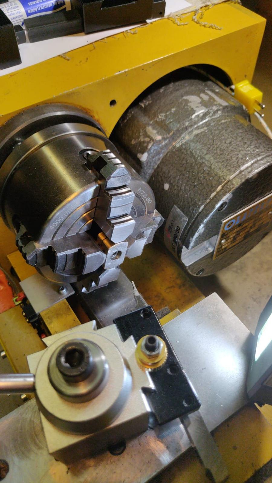 https://www.paulimot.de/Drehen/Drehb...-Loch-Aufnahme Kiinankamaa, mutta jotenkin laatuseulottua. Osoittautuikin priima kamaksi. Tuosta Burnerdin laipan olisi hyvin voinut modata tälle 80mm pakalle, mutta ajattelin säästää sen jos joskus tulee korjattua tämä Burnerd. Kiinasta löytyi 80mm laippa-aihio 14mm reijällä ja kierteellä. Omassa pikkusorvissa löytyy 11tpi nousu. Meinasin ensin yrittää tällä, mutta jo reijän avartamisessa selvisi, että tästä ei taida tulla muuta kuin sanomista. Koneen vaihto, keskiö mittoihin ja 11tpi kierre. Olakkeen viimeistely ja muu näpertely sujuikin sitten omalla koneella. Onnistui heti. Heitto noin 50mm päässä leuoista pari satasta. Viimeksi muokannut Säätäjä_setä : 10.12.2023 22:36 |