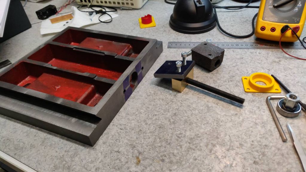 Visio kirkastui kun sattumalta löysin IKH:sta mustaa 10x1.5 kierretankoa. Samaan kasaan vielä 6201 32x12x10 laakereita, M10 jatkomuttereita sun muita aihioksi kelpaavia osia. Kokeen perusteella musta kierretanko tuntui toimivan hyvin vaikka ei olekkaan acme kierre. Syöttö tällä tangolla olisi 1,5mm / kierros. En antanut asian häiritä koska DRO:n asennus oli myös mielessä.