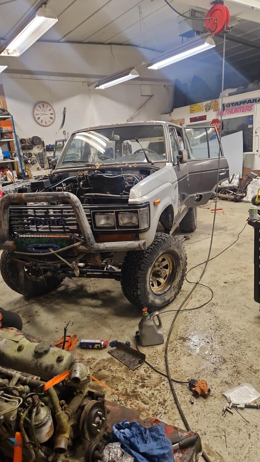 Eli auto on hj61 tuli itselle ilman moottoria ja pusikosta kaivettiin noin 10 vuotta ulkona marinoitunut 2h vapari moottori mitä lähettiin laittamaan keulalle.