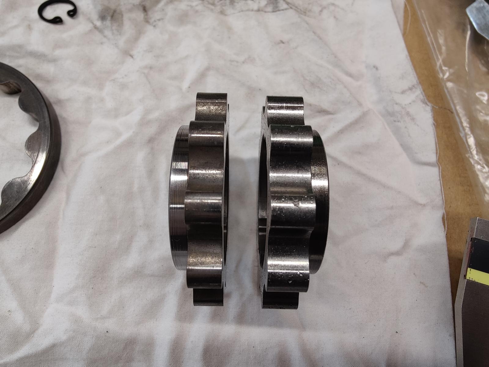 ![]() Tätä en olekaan avannut vielä, jos se mystinen rallattelu ajossa tulisi täältä. Raudat oli vahvistettu, mutta pitkä rauta kahdella vajaamittaisella ja kahdella alkuperäisellä kiinni ![]() Iloinen ylläri oli, että tässä oli vahvistettu etuvedon akseli. Paksuutta noin 2mm enemmän kuin alkuperäisessä (verrokki valkoisen Suzukin alkuperäisen jakiksen sisuksista) Kukkoa annoin sille, purkautuu varsin nätisti ![]() Joku pieni hippunen oli kiilautunut aluevalitsimen kytkentärenkaan kylkeen. Hyvä, että on pysynyt kyydissä, eikä hakeutunut hampaiden väliin... Sisääntuloakselin laakerit sateenkaaren väreissä, tämä laatikko on elämänsä aikana ollut vajaatäytöllä tai ilman öljyä ![]() Varsinkin pienin laakeri sisääntuloakselin päädyssä on käynyt lämpöisenä Etuvedon kytkennän siirtohaarukka vähän kulunut SJ413 jakolaatikon haarukka näyttää olevan paksumpaa materiaalia, toki myös valu, eikä levystä. Laitoin nyt molemmat 413 laatikosta, kun olivat priimaa. Joku pieni käynyt hammasta kokeilemassa, toki voi olla myös tullut ennen karkaisua valmistavassa päässä. Etuvedon pientä neulalaakeria mulla ei ollut, joten huolellinen putsaus ja tuoretta vassua sisään Sekoitellaan osia vähän enempi, 413 jakolaatikosta myös pääakseli, koska tästä lavasuzukin jakolaatikosta joku aikanaan lyhentnyt 5mm rummun päästä, että on saanut 410 kardaanilaipan mahtumaan... Vaihdoin myös nopeusmittarin ulostulosta stefan, oli vanha aika väljäksi mennyt Shimmasin pääakseleiden laakerit service manualin mukaan, sisääntuloon tuli 0,3 shimmi ja ulostuloon 0,1 shimmi. Kuva ei suoraan liity kyseiseen operaatioon Nyppäsin huohottimen teräsholkin pois ja laitoin 1/4"G -kierteen, siihen sitten paineilmaliitin, että saa huohotuksen tähänkin askiin kuntoon. Jarrukilpi lipsahti näköjään 90 astetta väärään asentoon, mutta muutenkin käsijarrun kalustaminen odottaa vielä, että saan uuden käsijarruvaijerin, vanha jäänyt johonkin kiveen tai risuun, kun on taittunut. Kannakeraudoille en tässä välissä tee muuta kuin laita pidemmät pultit, joilla laatikkoon kiinni.