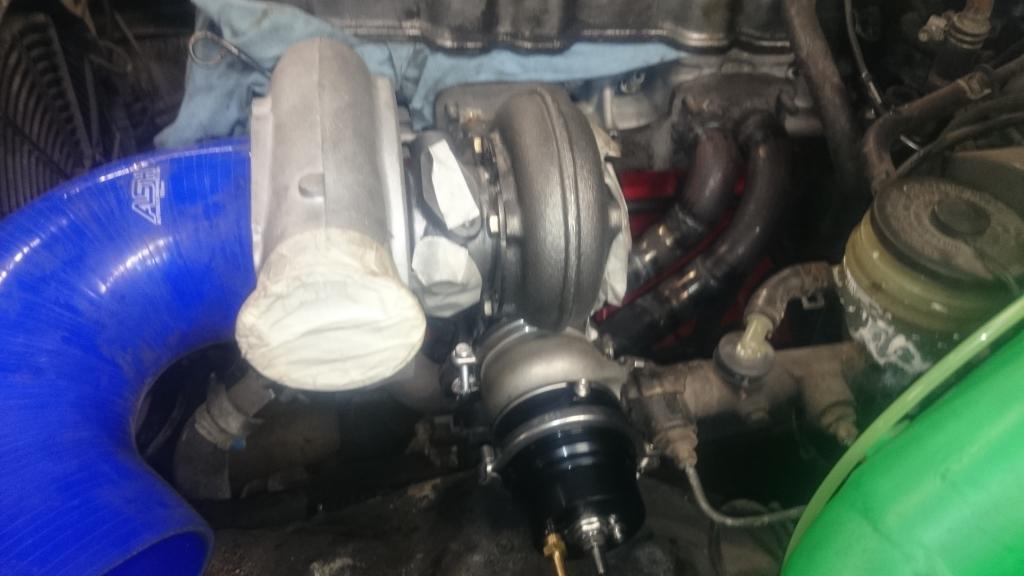 niin vaan tuli pakosarja tehtyä .. alku viikosta hiekka puhallus ja black satin lämpö maali pintaan . turbokin kääntyi niin päin kun sen kuuluu olla