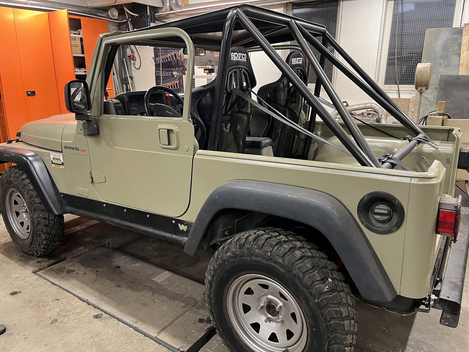 AKK? Trafi? Jos vaan trafi, niin eihän sun tarvii tehdä turvakaaria, vaan teet vaan rättikatolle kehikon, mutta vähän paksummasta tavarasta. Jotain sivuittais/pitkittäistukia kannattaa kyllä laittaa. Jos kävisi niin ihmeellisesti että katsastusmies kiinnostuisi näistä: https://forums.offipalsta.com/album....ctureid=245237 https://forums.offipalsta.com/album....ctureid=245238 Niin noi on vaan rättikaton + lasikuituisen katon kehikko. |