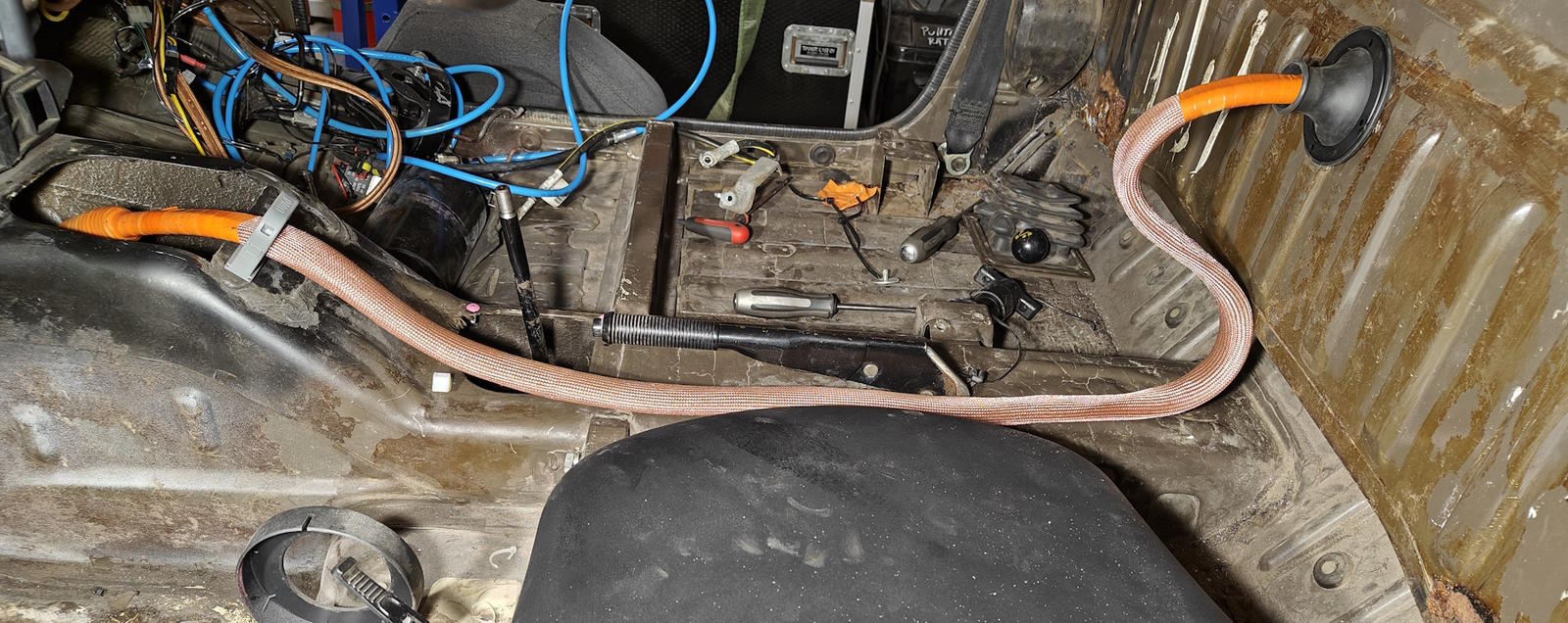 Ja ilmeisesti painonjakauman vuoksi akku kannattaisi olla ehkä toisinpäin eli korkein kohta kabiinin vieressä, mutta yhtä ilmeisesti ei, jos/kun kaapelien liittimet ovat tuossa kuvassa nyt paremmin suojassa.