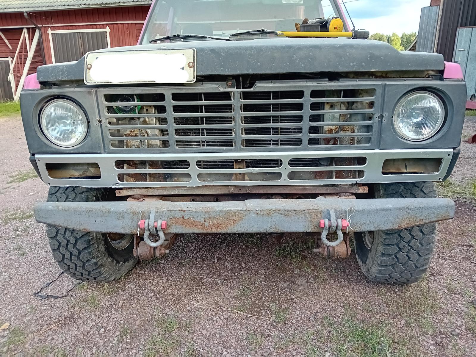 tuo maskin alla oleva ritilä on nyt maalattu. Oli muuten ihan helvetin mätä, siksi alareuna kokonaan leikattu irti. Olin ihan kahen vaiheilla, että teenkö uuden, vai laitanko vanhan. Laitoin nyt tuon vanhan vielä paikoilleen. Ihan helvetin ruma, niin en kehannu lähempää ottaa kuvaa . Tuota ei ollut mitään järkeä ruveta hitsailemaan yms, niin olkoon nyt mikä on. Tuolla ei kuitenkaan ole mitään vaikutusta minkään rakenteen lujuuteen... Ei saa tehdä liian hienoa, muuten ei viitti yhtään metässä ajaa, mutta pitää kuitenkin kestää omat ja muiden ihmisten katseet julkisilla paikoilla, kun suurimmaksi osaksi tulee kuitenkin tiellä ajettua...