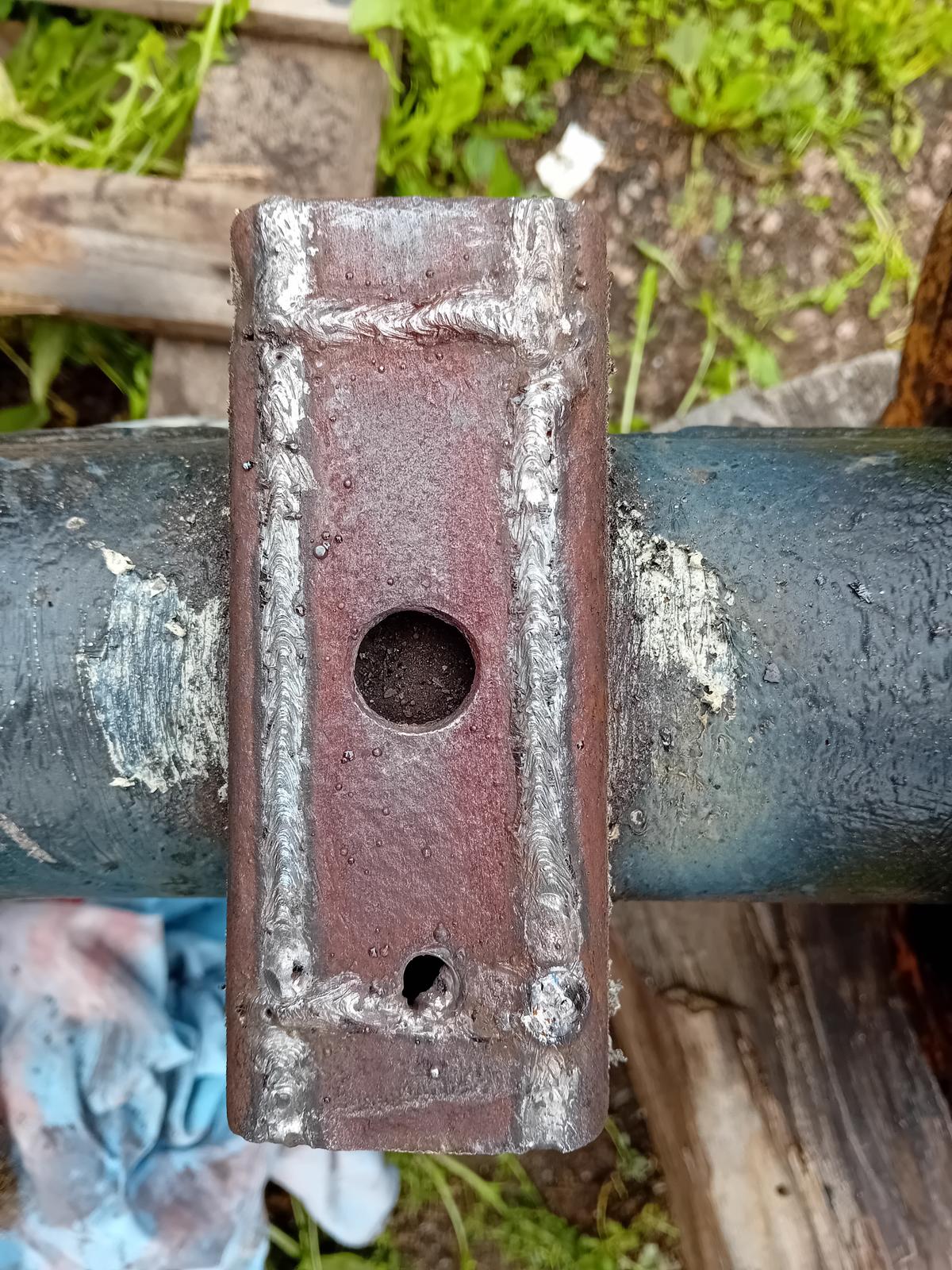 Toinen irti leikattu pala oli niin ruostunut, että tuli reikä hitsaressa, mutta sain hepattua umpeen. Hitsasin 2,5mm puikolla nuo. |