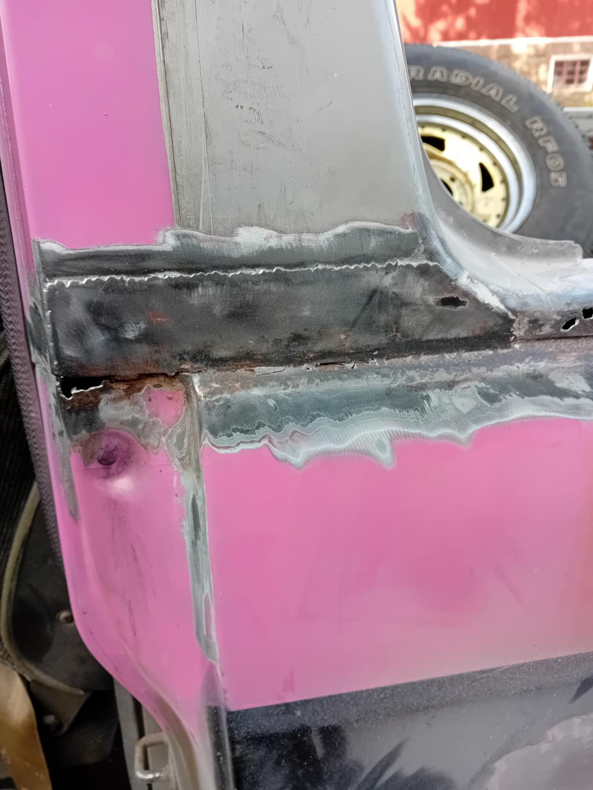 Toinen irti leikattu pala oli niin ruostunut, että tuli reikä hitsaressa, mutta sain hepattua umpeen. Hitsasin 2,5mm puikolla nuo. |