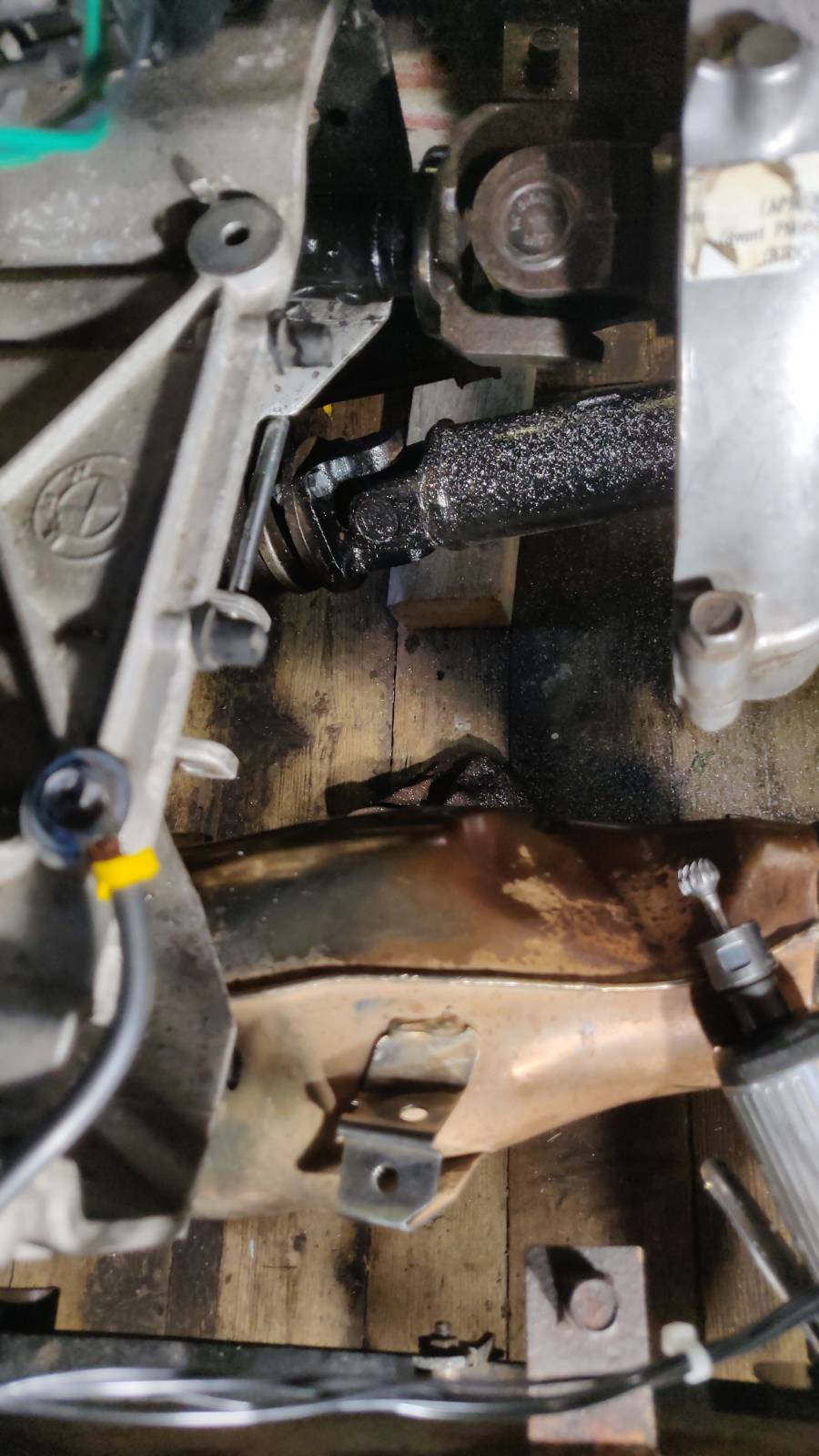 Edelleen koekäyttöä (sytytysboxi) odotellessa sain rakennettua nivelen/akselin Bemarin moottorin ja Suzukin vaihteiston väliin, Kulma ei ole mitattu, mutta parin-kolmen asteen luokkaa. Koekäyttö paljastaa sitten toimiiko.