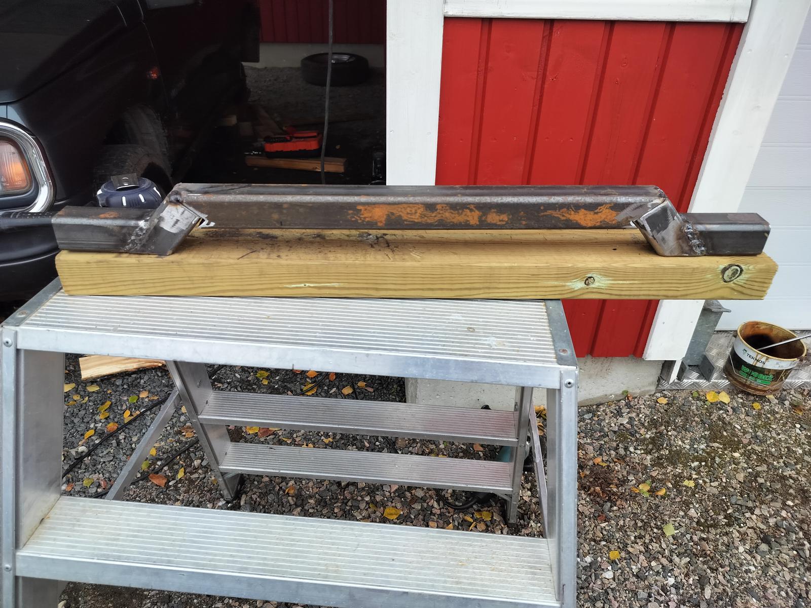 Kyllä tämäkin pikkuhiljaa etenee palkkit alkaa olemaan paikoillaan. Laitoin kokoa 120x40x3, mahtaa kestää ainakin minun ajot.