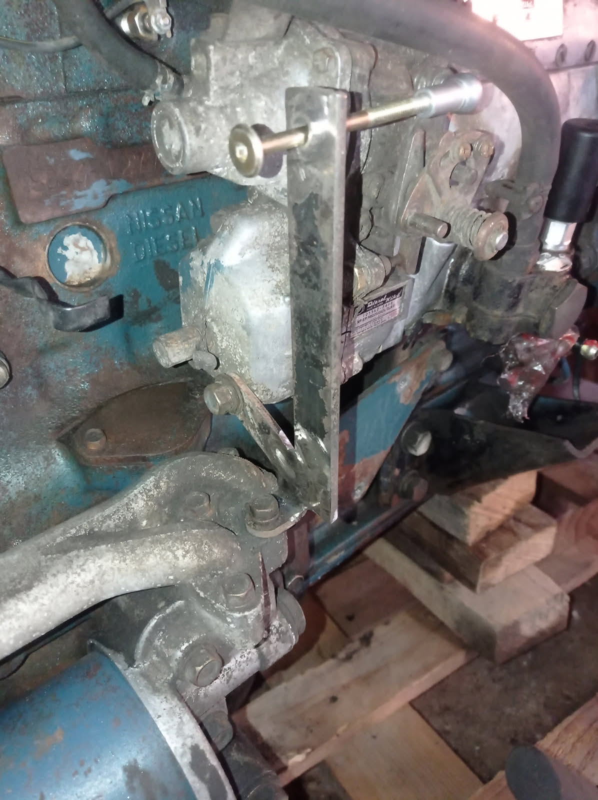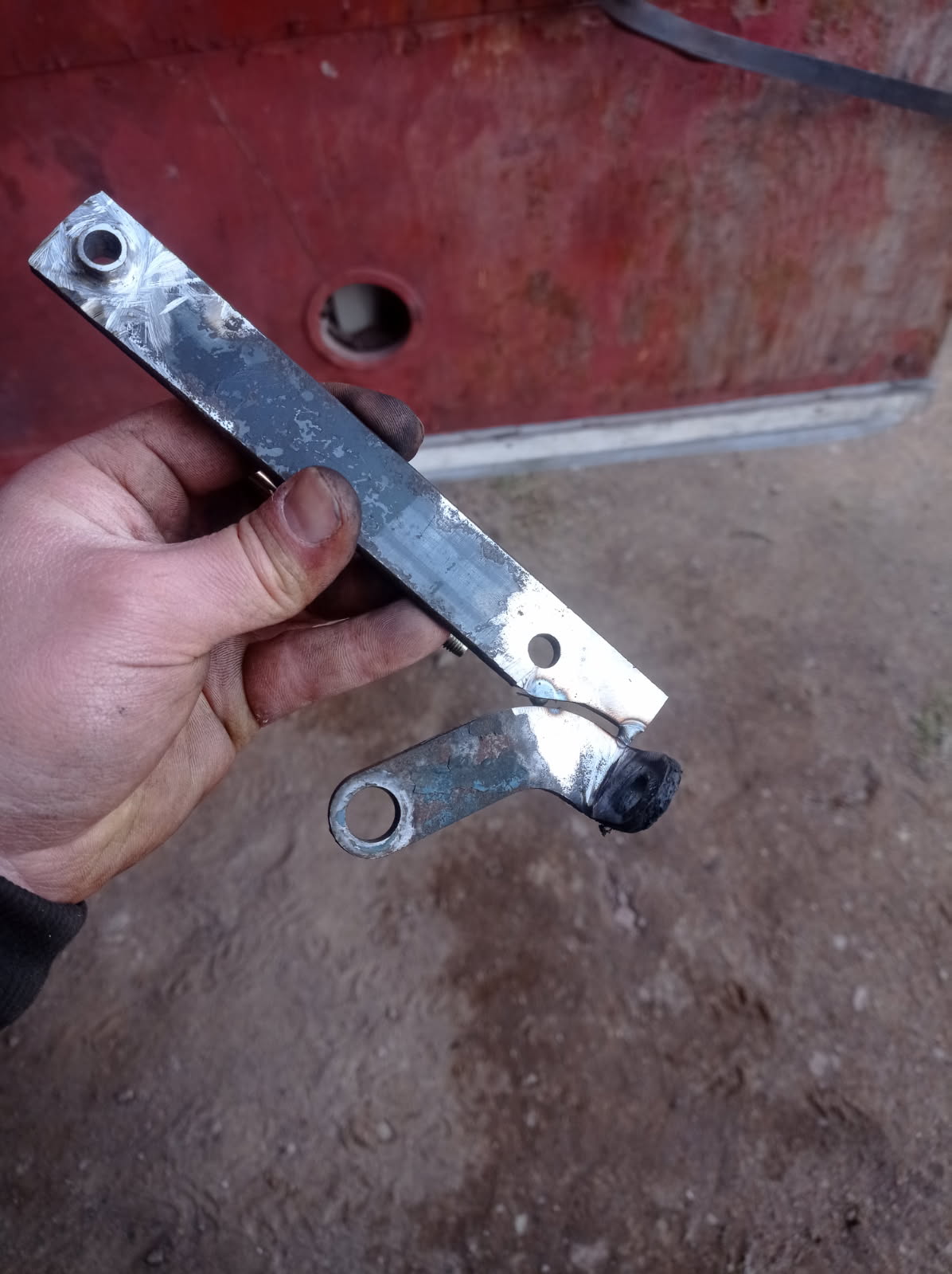 Ostin tuommosen kuulanivelen ja tein tuon sammutin-/pakkosyöttövivun kannakkeen. Hitsasin lattaraudan tuohon syöttöpunpun ja öljynsuodatinjalan väliseen kannakkeeseen. Nyt vaan loppuvivusto hyttiin asti
