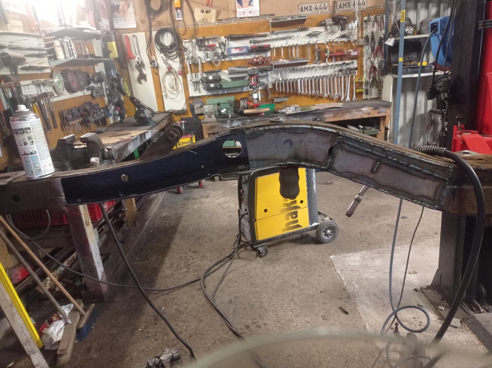 Alkaisi pahimmat ruostepaikat olemaan rungon osalta hitsattu. Ihan muutama pien paikka on vielä edempänä rungossa. Toki muuta hitsattavaa vielä on, esimerkiksi iskarin korvakkeita, yksi tai kaksi pakoputken kannaetta yms, muttei mitään mahdotonta. Kohta on varmaan ruvettava tekniikkaa rassaamaan ja maalaamaan...