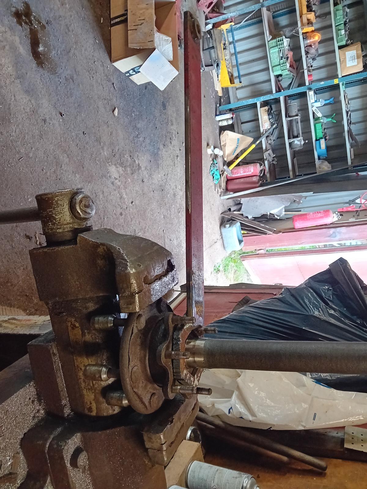 Laakerin mutterit olis nyt kiinni. Uusi mutteri olikin 55mm, eikä 58, kuten vanha, elikkä sen uuden sai kiinni ihan Bilteman 29€ lenkkiavaimella ja moskalla. Vanhan mallin mutterille piti tehä erikoisavain auran kulutusterästä ja jostain vanhasta raktorin ykkös-kategorian vetovarren pätkästä. Oli aika perkeleen työläs homma viilata tuo avain muotoonsa, mutta tuli onneksi oikein toimiva kampe.