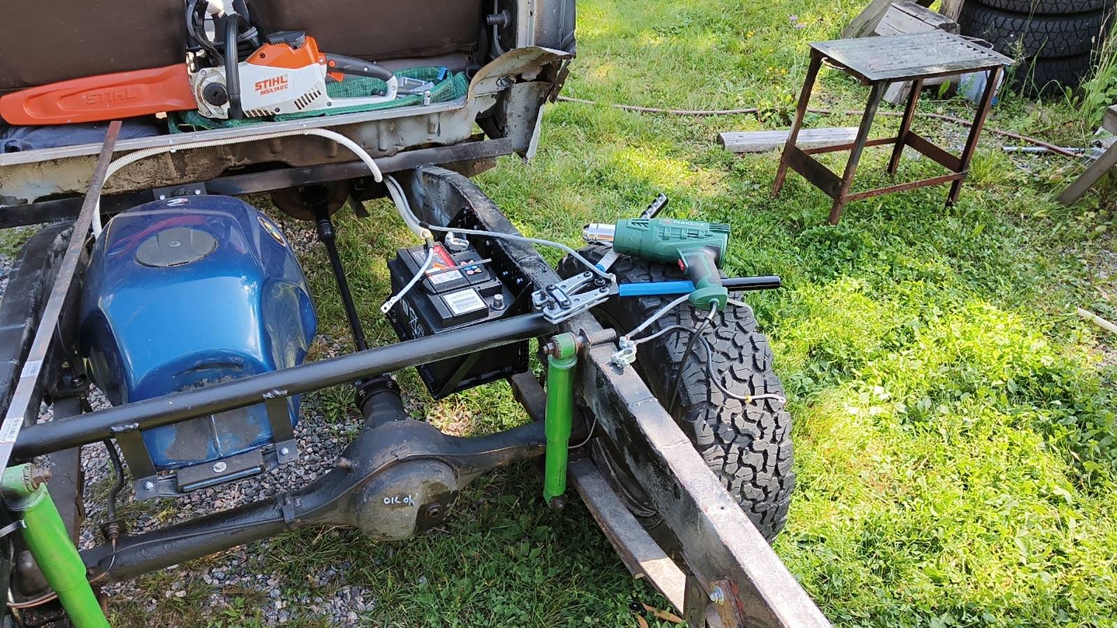 Tankille ja akulle löytyi uudet paikat taka-akselin päältä melko alhaalta. Eniten duunia oli "putkispagetin" siivilöinnissä.