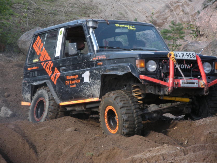 1. Arska/Matta V8 LJ 16vp 2.Mörkö Range 22vp 3.Ristola/Aapee LJ 22vp 4.Hämppy/Aapee LJ 22vp 5.454SS Cherokee 25vp Repro LJ 25vp 7.Huopainen Range 36vp 8.Tukkijulli Cherokee 38vp 9.Make LJ/BJ/SJ 40vp 10.Savu Wagoneer 53vp 11.Emppu Blazer 54vp (jätti yhen jakson ajamatta eli sai niistä maksimit )12.Reiska BJ 57vp 13.jussithegreat 71vp Toisesta, kolmannesta ja neljännestä sijasta oli kova taistelu joka piti ratkaista nyrkein mutta päädyttiinkiin ylimääräiseen special rataan jossa voiton ratkaisi se joka saa auton nousemaan korkeimmalle, taka-akselin kohdalta katsottiin noustu matka eli tulos. Kiitoksia kaikille mukavasta iltapäivästä, enemmänki olisi toki kisaajia mahtunut. ![]() Ja siihen hirviömonsteriV8BJ+44"boggerit, ÄKKIÄ etsimään hitaampia välityksiä, olisi mukava nähdä radalla. |