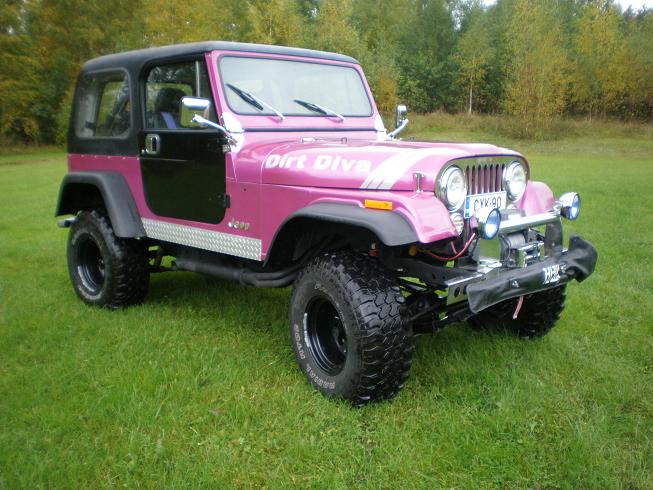 Mutta Jeeppi se on, 4.0 (?) HO (?) AW4, panssarit, orkkiskorotus, bead-lockit, vinssi edessä - takana yms. kisarekvisiittaa...