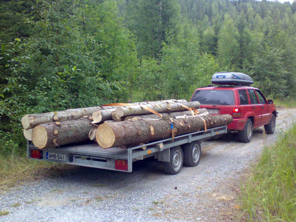 Wranglerilla vedettiin tukit metsästä ja Grandilla sitten sahalle.