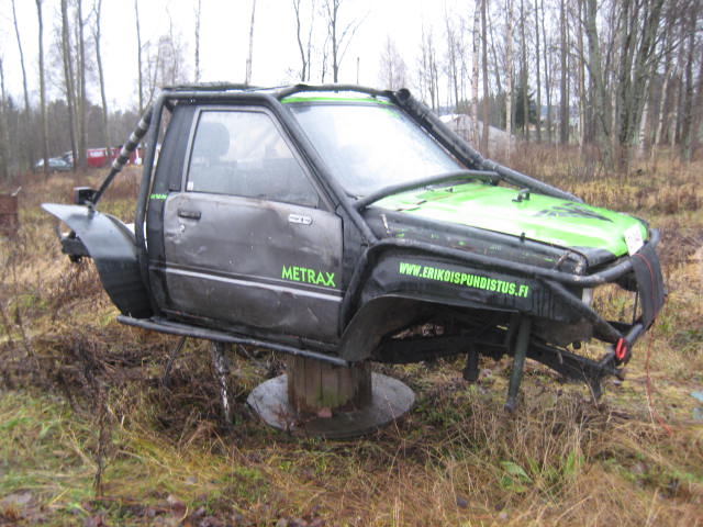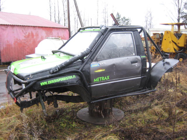 Meni moottori Meni puslat (kaikki) Meni kartaanit(molemmat) Meni iskarit(kaikki) Meni laturit (molemmat) Meni startti Meni jarrut Meni laatikko Meni HERMOT... Eli ilman tekniikkaa (ainoat ehjät) runko + kori (kaarilla) + akk :n kats. kortti. Ja runkohan on lyhennetty molemmista päistä. Nii ja onhan siinä vielä ehjät lasit ja melkein suorat ovet... Eli loppu inspiraatio... Nyt joutu Hilu akselin luovuttajaks... |