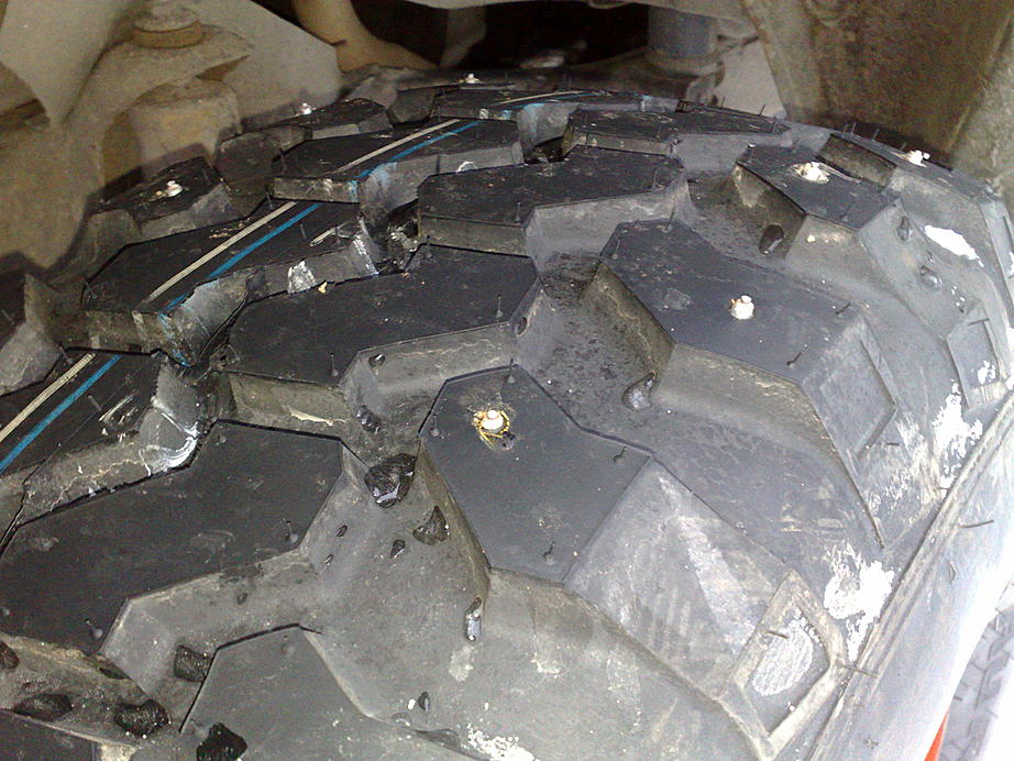 Samoja piikkejä alan alle ruuvvaamaan kun totean että talvi on oikeasti tullut ja saharoitten ominaisuudet ilman nastoja loppuu. Asennuksesta sen verran että sata kappaletta kiekossaan yks per pala ulkoreunaan hienosti mallattuna. Jeepin rojekti ketjussa muistaakseni joku kuvakin niistä on.