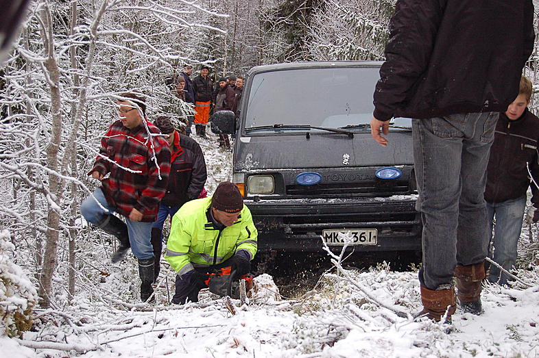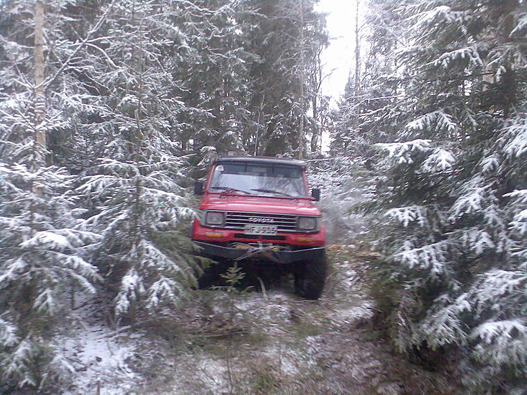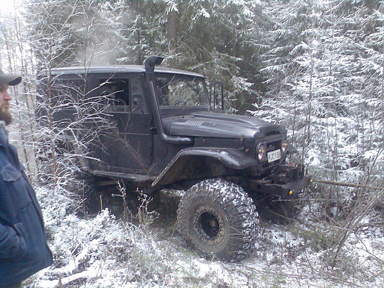 Ensin luulin että kardaanin ristiko huusi kovalla äänellä kun klappiakin oli ihan kivasti, joten vaihdoin sen, mutta se ääni ei kadonnut. Sitten pari tuntia ihmettelyä ja en saanut ääntä paikannettua nostin auton puupalikoiden päälle ja sain kaverin viereen kuuntelemaan mistä ääni kuului, niin vinssin kardaanihan sielä omiin nimiinsä pyöri oli ilmeisesti jossain vaiheessa pökännyt maahan ja kääntänyt vipua sen verran että oli mennyt päälle ei vaan missään vaiheessa tullut mieleen että olisi noinkin voinut käydä kun ei ole vielä ikinä ollut minulla päällä kun tuo vinssi on ositain kytkemättä. Jousen riipukekin oli jo kääntynyt oikein päin kun kotona rupesin ihmettelemään, että siinä ei sen suurempaa vikaa ollut.