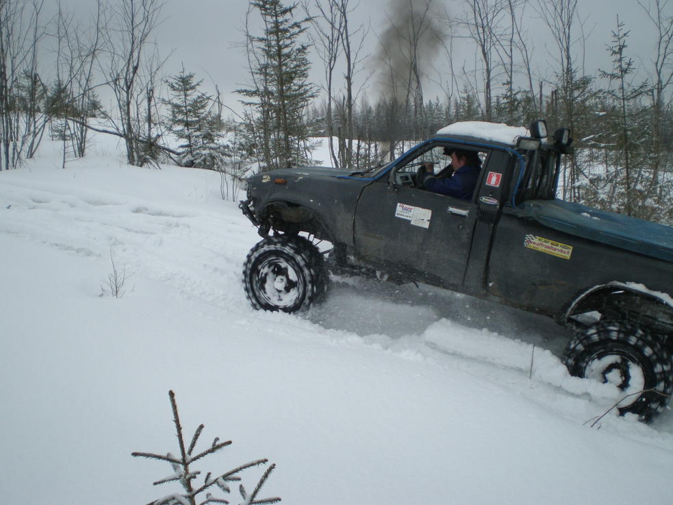 Eipä tuo lumi haitannu menemistä. Mietiskelin tuon auton etenemistä, voisko se tuo savu olla syy auton suht hyvään menemiseen