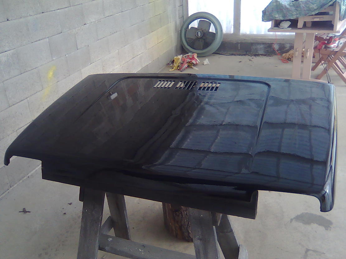 No nyt on jo pientä maalaus hommaa päässy tekeen. Konepeiton sain maalattua tänään. On se tuo musta pirullinen väri ei voi muuta sano mutta onneksi ei oo niin justiin ton auton kanssa