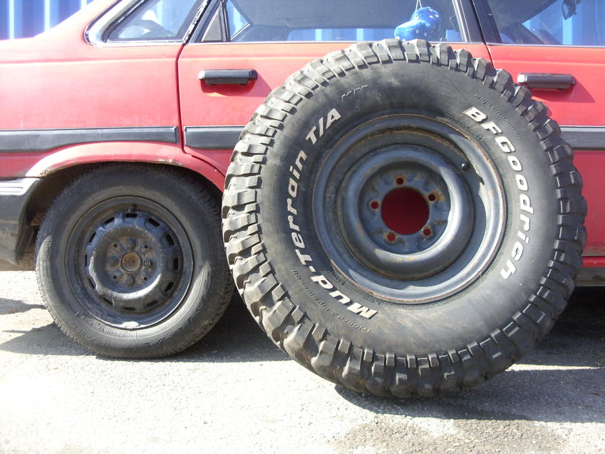 Tuli renkaat haettua kans tänään luulis että 33 tuumaset ei vielä oo kovin isot mutta on niillä kokoa ku vertaa tohon Carinaan