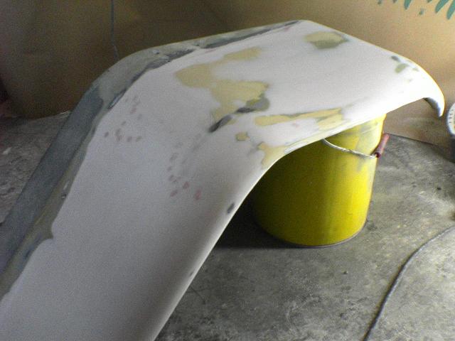 Ja nokkapelti aika lailla valmiina Tein pienet tuennat sisäpuolelle (ennen kittauksia tietysti) ettei pakkelit pamahda heti irti, pelti on nyt tukeva Maalinpoistoa Hiontaa ja pientä kittausta |