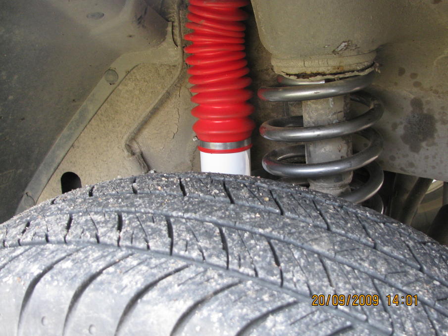 sarja oli kokonainen sis.uudet jouset puslineen,iskarit sekä uudet uu-pultit.RoughCountryn tekele ja tuli mulle cross4wd:ltä hintaan noin tonni.ainut mitä jäin kaipaamaan ja jota hieman ihmettelin kun iskari olivatki mallia öljy eikä kaasut kuten luulin. maastoon en ole vielä eksynyt mutta tienpäällä tuntuu aikaisempaan kuoleentuneeseen alustaan verrattuna jopa huipulta. nyt on puskurikin jo värissä ja paikoillaan,ruma.maalina käytin kunnon hammerriittia ilman mitään pohjusteita.pitäis kestää.kommentteja,olisiko pitänyt sittenki olla musta?
