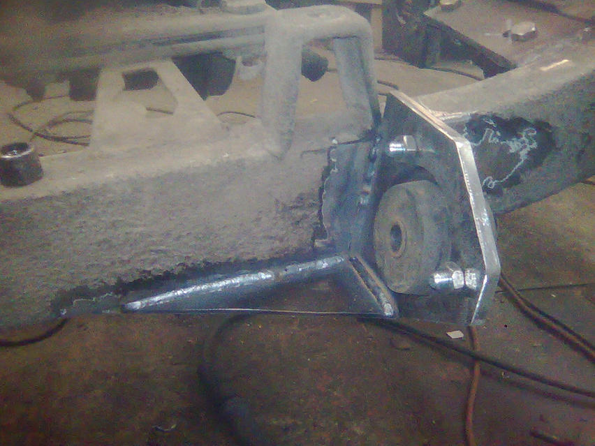 elikkäs tossa olis kuva niistä jousien upotuksista runkopalkkiin, takakolmiotuen pallonivelen pusla sekä taka jarrulevyjen kiinnitys mekanismistä..jousikuppien rakentelu tällähetkellä työn alla.. ehkä huomenissa tulis niistäkin jotaki kuvia..