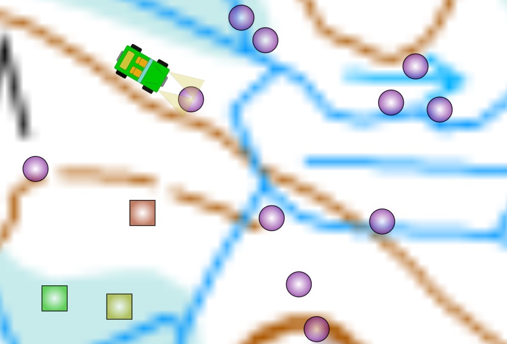 Olisiko kiva jos auto näkyy tuollaisena kartalla? Tässä saavutaan rastille.