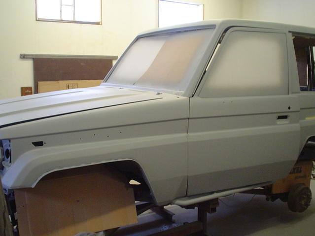 Vaihdelaatikolle tommonen kannatinkumi samalla laatikon taka pää nous ylös. Ovissa kittiä hommia aloteltu. Ja vähän muutenkin. Toisinsanoen koko auto kitattu jo. Toinen kylki. |
