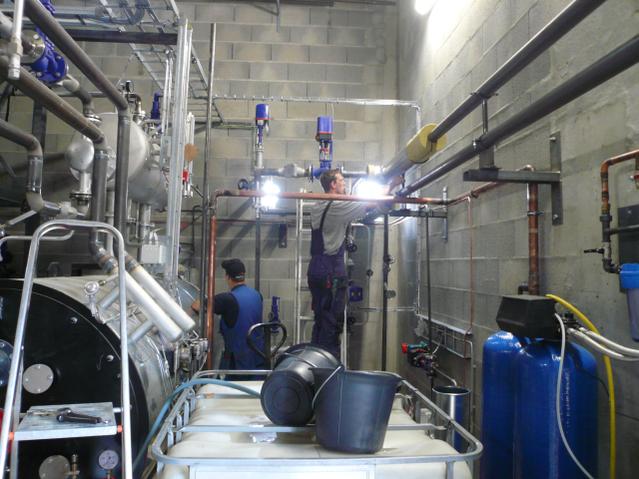 Matkalla töihin: Pojat pistää piuhoja kiinni: Putkia eristellään: Valmis laitos, koeajoa seurataan keskellä yötä: Muuna aikana näkyy Windowsin työpöytä.. |