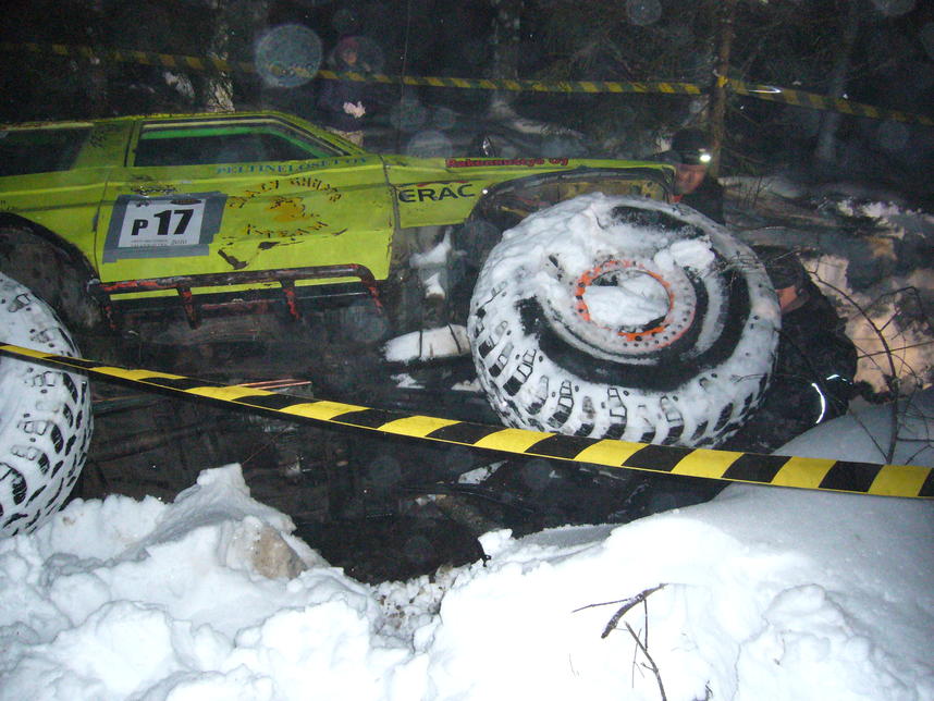 Kone Ollit tekivät kohtuullisen pitkään remonttia mutta silti stanuissa sijoitus kolmas, ei huono! Portaali Läjä nousemassa rastille. J-T ja T££MU ![]() Los Hapetus, lunta ilmassa. Ensimmäinen kolhukin Suzukiin, onneks ei ollu korinoikaisusarjaa tai oltas jouduttu hommiin. ![]() |
