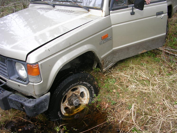 Videon loppupuolella pääsiäis-pajero menee ojasta yli mummoilu-tyylillä, takapenkillä kun on 3 ja 8v poikia. Noin se joustaa vakiona ilman kallistuksen vaimentimia, etupää kiristettynä tappiin.
