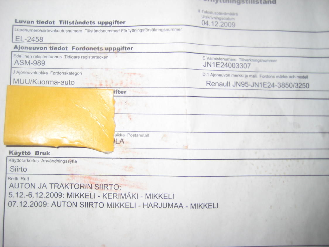 Meneehän se, kovin ahtaisiin paikkoihin ei vaan kannata alella. Hommasin sitten puolivahingossa syksyllä pikku-volvon, FL408, kokonaispiano 7500kg ja kantavuutta reilu kolme tonnia. Menee kivasti C1E kortin kanssa, perään saa trailerin jos haluaa, ja kun vetoauton omapaino on reilu neljä tonnia niin ei ole kärryn painojenkaan kanssa ongelmaa, kolmen ja puolen tonnin kärry menee kevyesti. Sitä en tiedä miten loistokkaasti tuollainen laiskimus jaksaa kahta autoa viedä, suska lavalla ei vaikuta kulkuun juuri mitenkään. Tyhjänä 14 sataselle ja suskan kanssa 16. Rekisteriotteen mukaan 3.6l suora kutonen, tehoa tais olla 90 heppaa tai kilowattia. Kulkee tyhjänä (ja suskan kanssa) aika kevyesti kiekkamittarin punarajalle, vauhtia satanen tai satakymmenen (en muista). Kiihtyis vielä jotain tahtia (=hitaasti) edelleen, ei vaan ole tarvinnut kokeilla enempää. Lava on 210 leveä (sisämitta), eli laidat joutuu ottaan pois kun ajelee rangen sinne. Lavalla oli muistaakseni 4 metriä pituutta. Akseliväli on aika pitkä, ihan niinkuin tässä olis joskus ollut pidempi lava tai koppi päällä. Kuvakulma korostaa koppia turhan paljon, on siinä oikesti se lavakin.