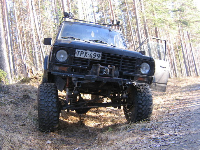 Käytiin tuossa "tossavaisen" kanssa kokeilemassa autoja kestääkö, no kyllä molemmat tuli ajamalla pois metsästä. renkaat pitäs paremmat olla karkeammat ainaki.. itselle etuvalo säpäleiksi, joitain lommoja, vinssin vaijeri poikkisiinäpä sitä. visko pitäs kirrata että pitäs kunnolla. olisko ohjeita kiristykseen..?