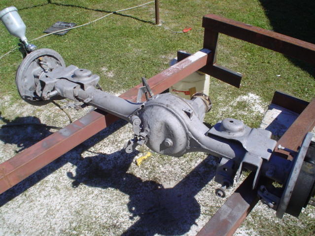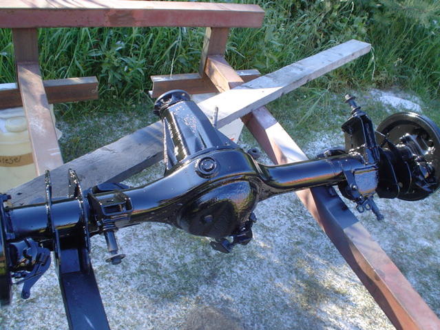 Muutama säkki hiekkaa puhallettu akseliin ja tukivarsiin ja vedetty pohjamaalit.