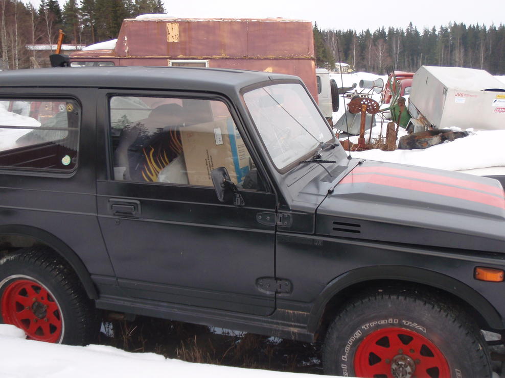 Lähtökohtana toimi suht orggiskuntoinen sj413. Edellisen omistajan toimesta oli mm.ruosteita paikkailtu ja palkkihelmat asennettu,eli niihin ei tarvinnut puuttua(taisi olla tervein suikan koppa, johon olen koskaan törmänny) .