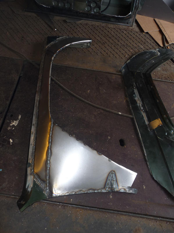 Toinen takapyöränkotelo muotoutunut uudestaan, mutta pientä sipistelyä on vielä että saa takapenkit ja muut osat mahtumaan. Oikeanpuolen kulkilevikkeetkin karkeasti muodossaan.